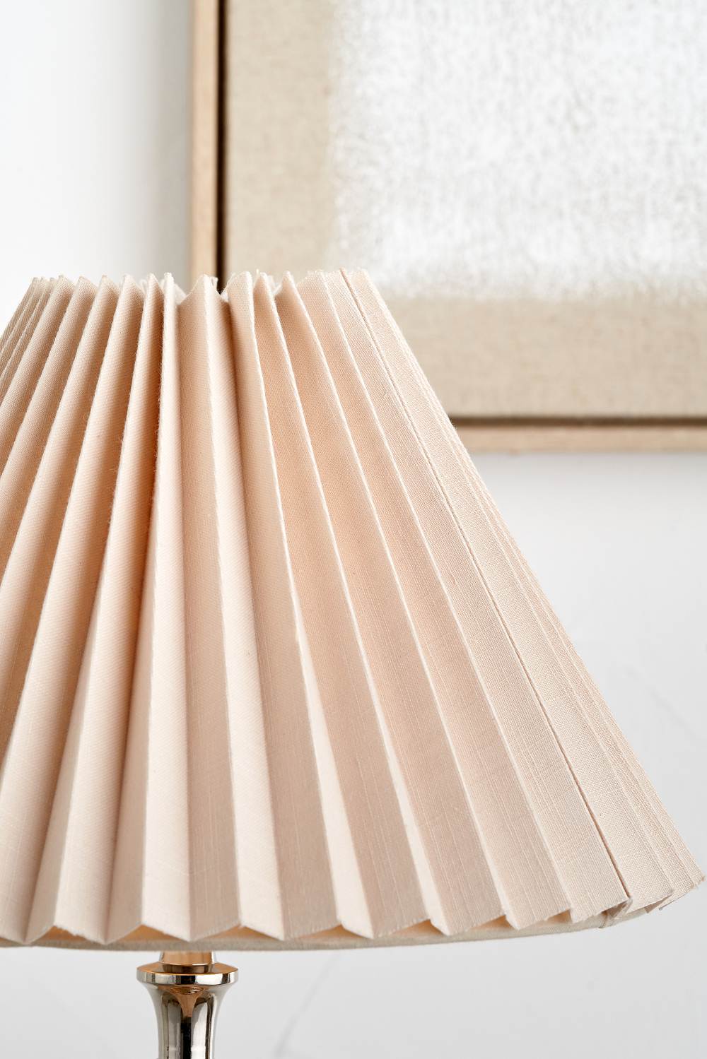 This attractive piece has been expertly crafted with natural, hard pleated linen fabric to add depth and tactility to any setting.