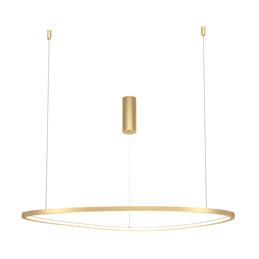 Illuminate your space with the Glint Pendant Lamp With Brass Styling - Large, a versatile lighting solution that marries modern industrial style with minimalist design. This brass-coloured aluminium masterpiece seems to float in mid-air, creating a trendy focal point in any room. Whether you're brightening up your living room, bedroom, or even a café, its adjustable height (20-120 cm) ensures the perfect lighting setup. The high-quality LED light source (3000K, 2200 lumens) provides a cosy, relaxing atmosphere while maintaining energy efficiency. With its sleek lines and balanced shape, this lamp is ideal for contemporary interiors, from hi-tech to minimalist styles. Backed by a 3-year warranty, it's a lighting investment you can trust to elevate your space for years to come.